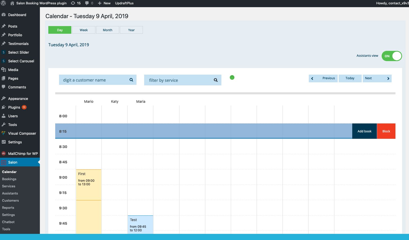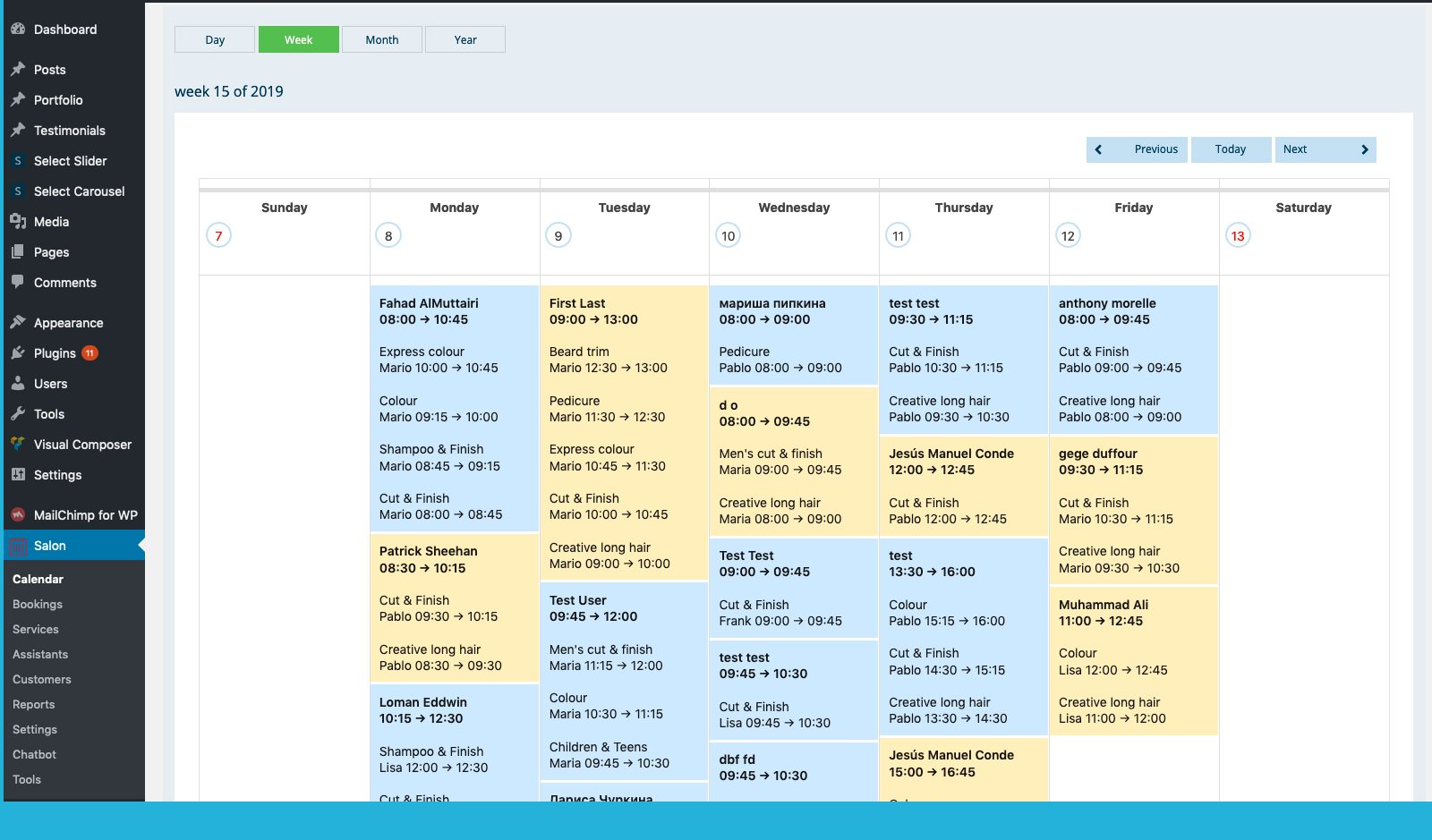 Editores de WordPress como administrador del salón