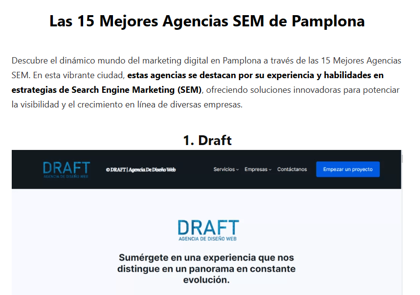 ¡Estamos emocionados de compartir una noticia emocionante con todos nuestros clientes y seguidores! DRAFT Design Web ha sido reconocida como una de las 15 mejores agencias SEM de Pamplona por Educapption.