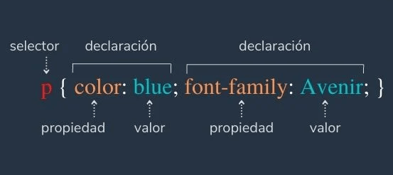 Un selector apunta a un elemento HTML específico al que se aplicarán los estilos, mientras que las propiedades y los valores definen cómo se verá ese elemento. Aquí hay un ejemplo básico: