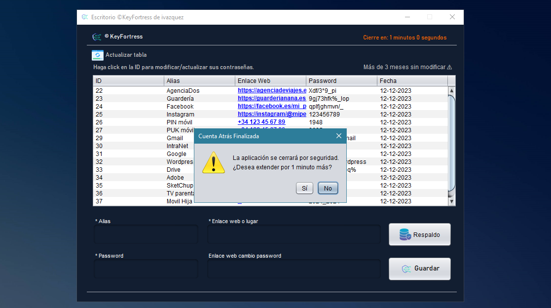 La función de temporización de ventana de KeyFortress añade un toque de ingenio a la seguridad de tus contraseñas.